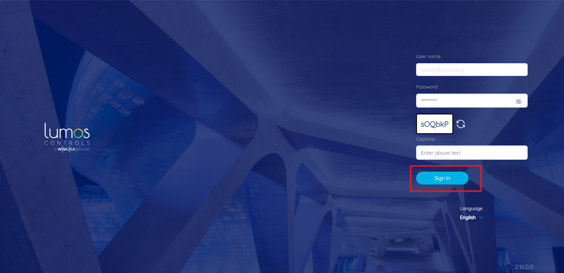 User can login using the same credentials used to login to the Lumos Controls mobile app. To login to the Web app: